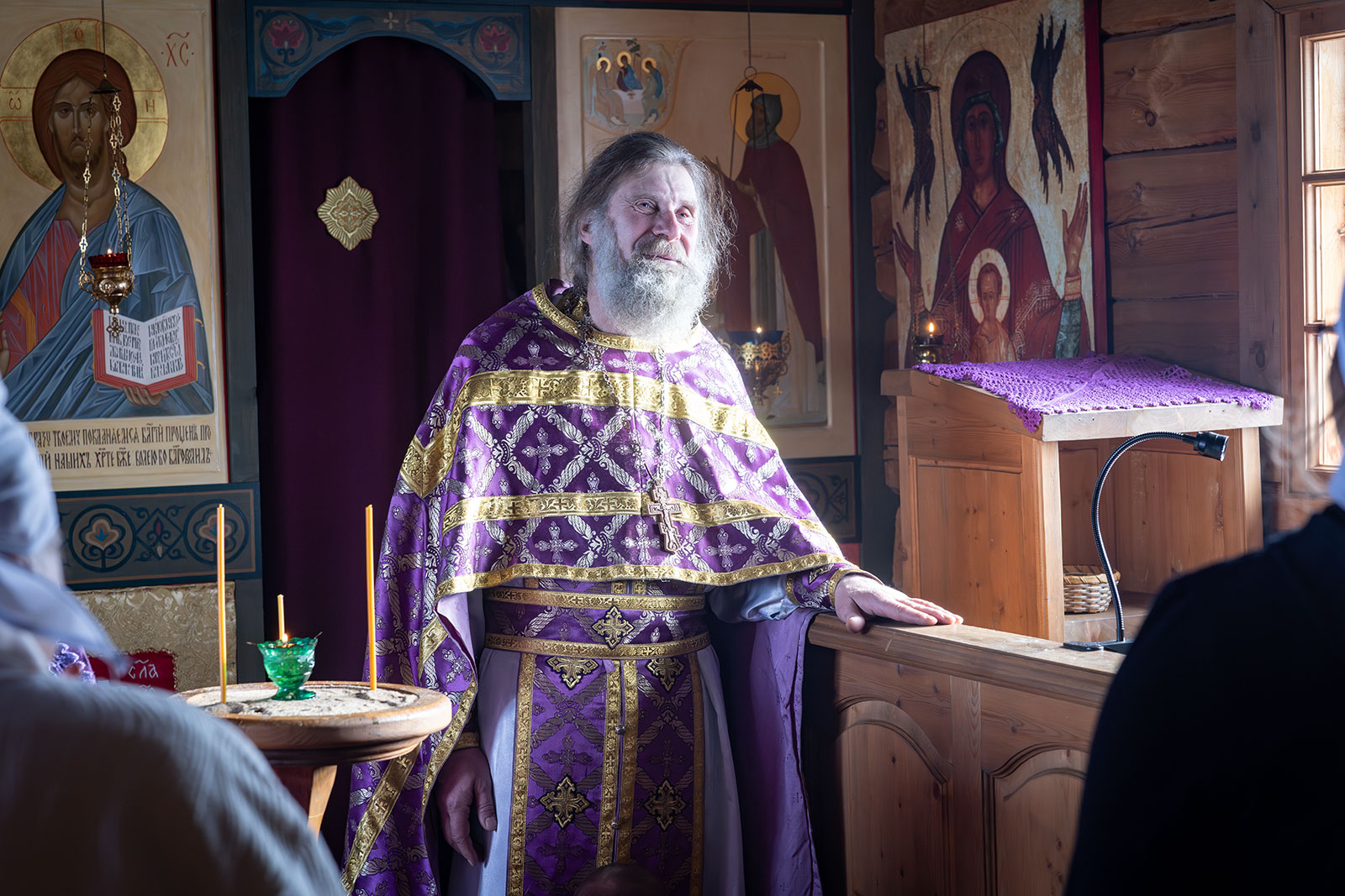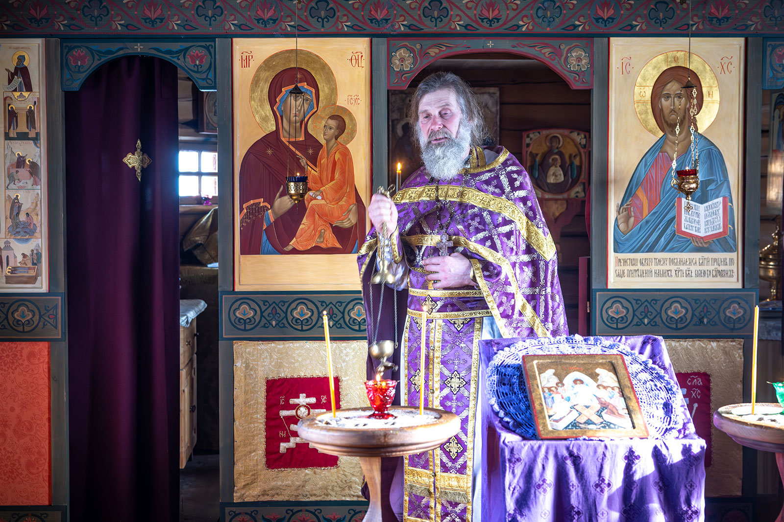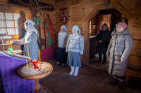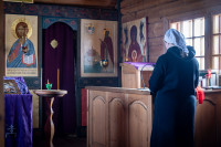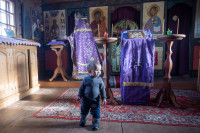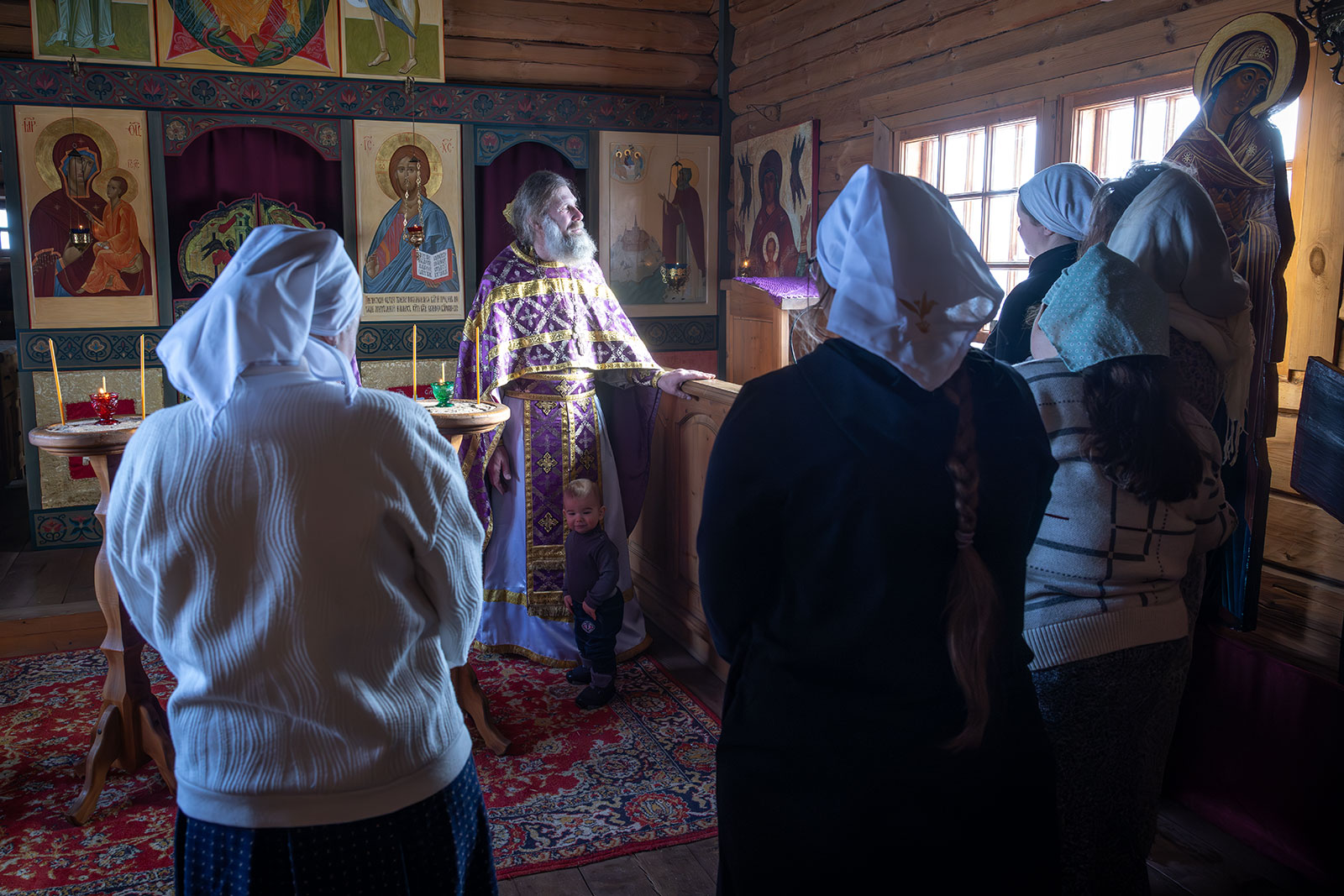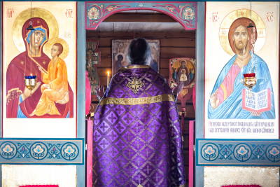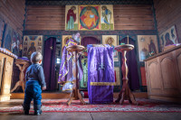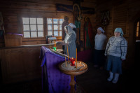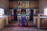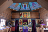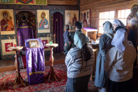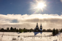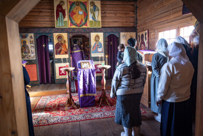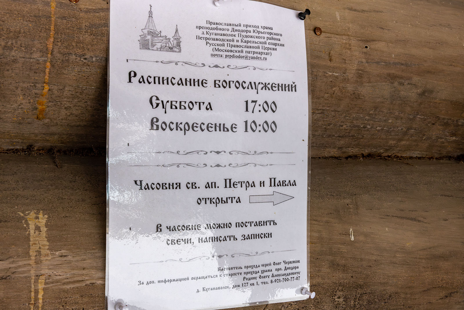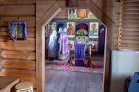 На фото: храм Диодора Юрьегорского в Куганаволоке, воскресная литургия, отец Олег и прихожане, часовня Петра и Павла в Куганаволоке.
