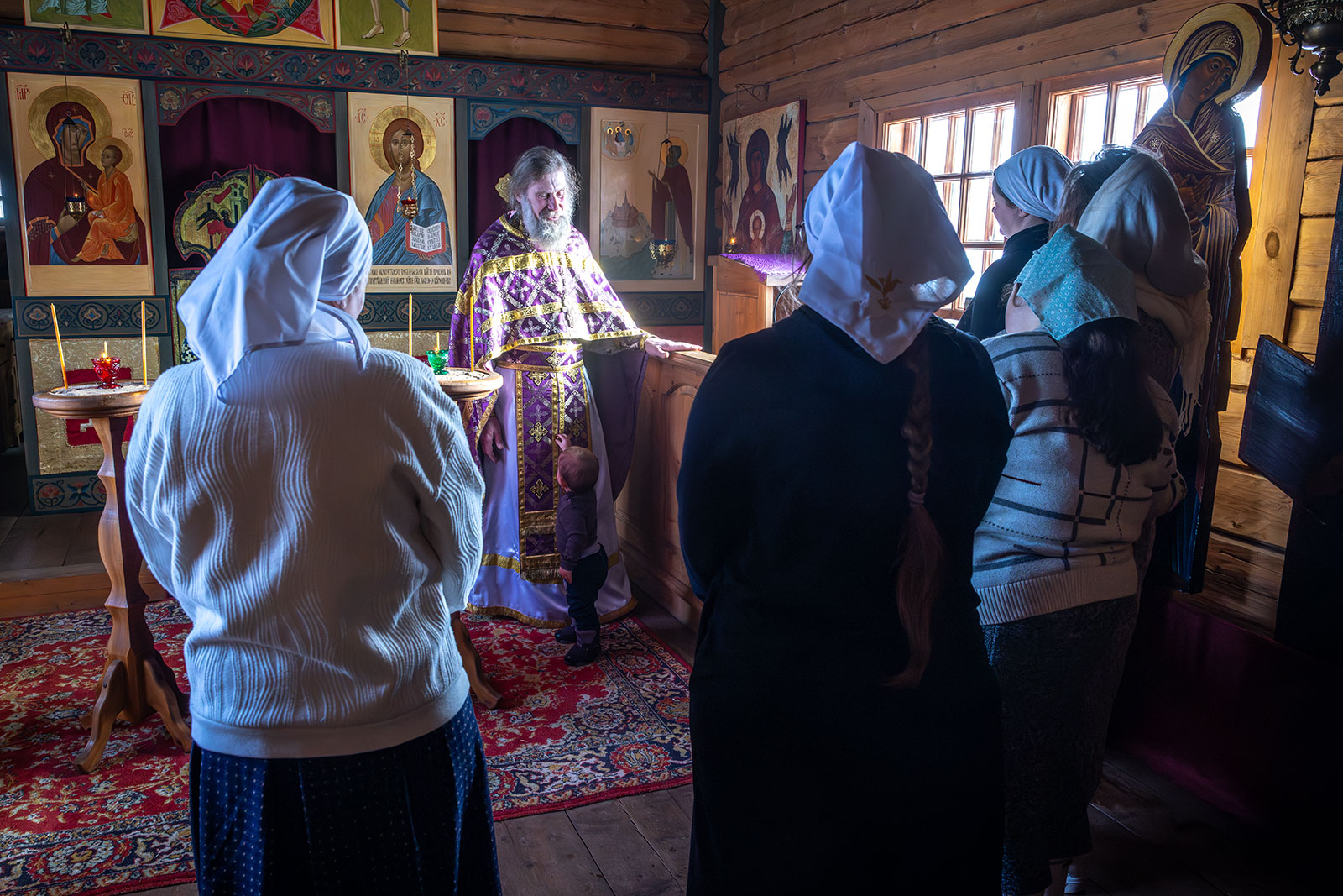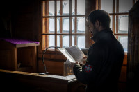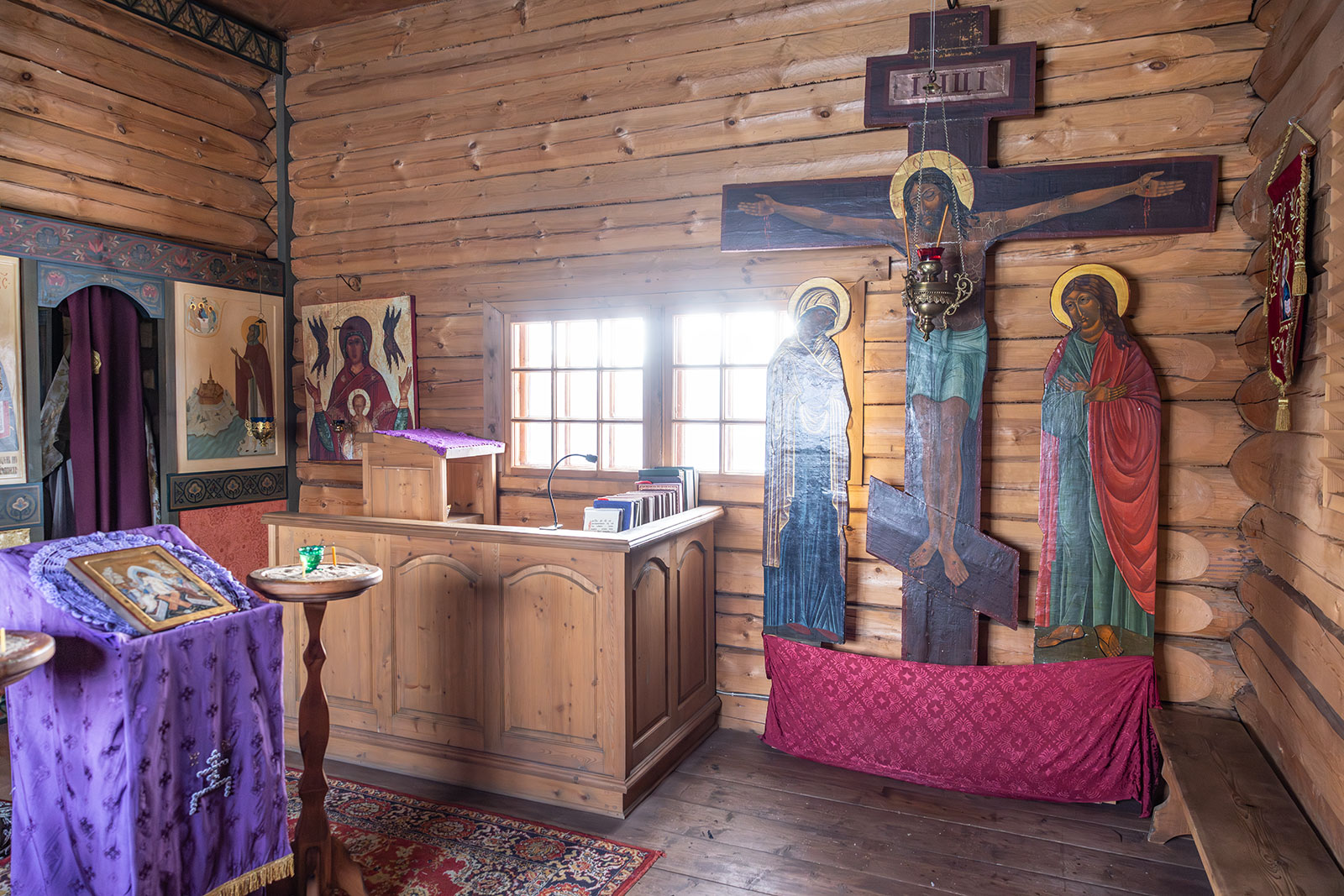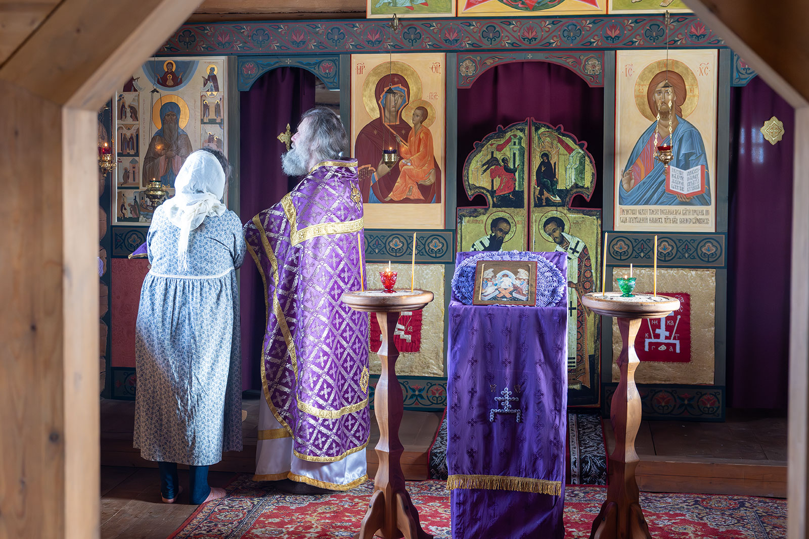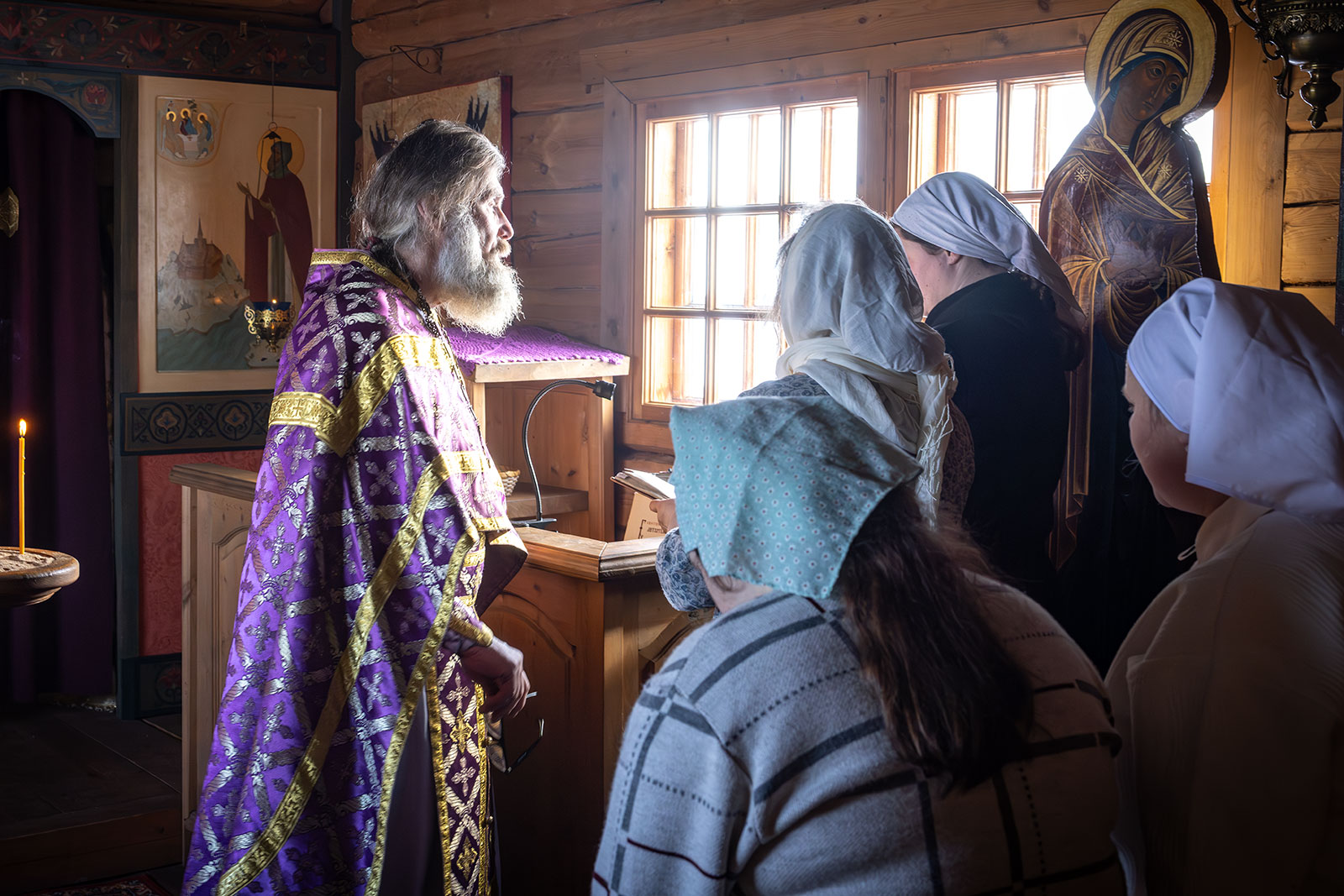На фото: храм Диодора Юрьегорского в Куганаволоке, воскресная литургия, отец Олег и прихожане, часовня Петра и Павла в Куганаволоке.