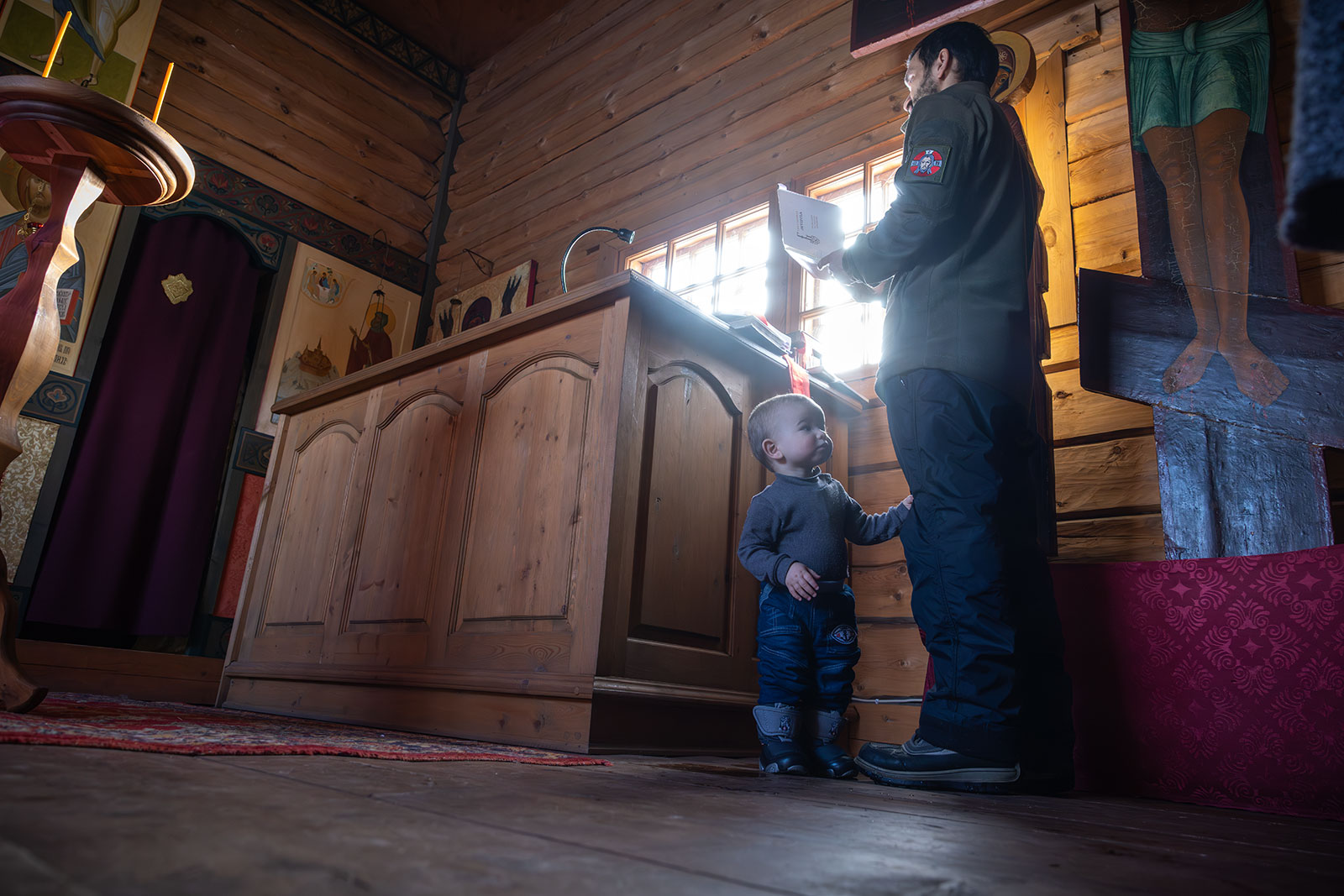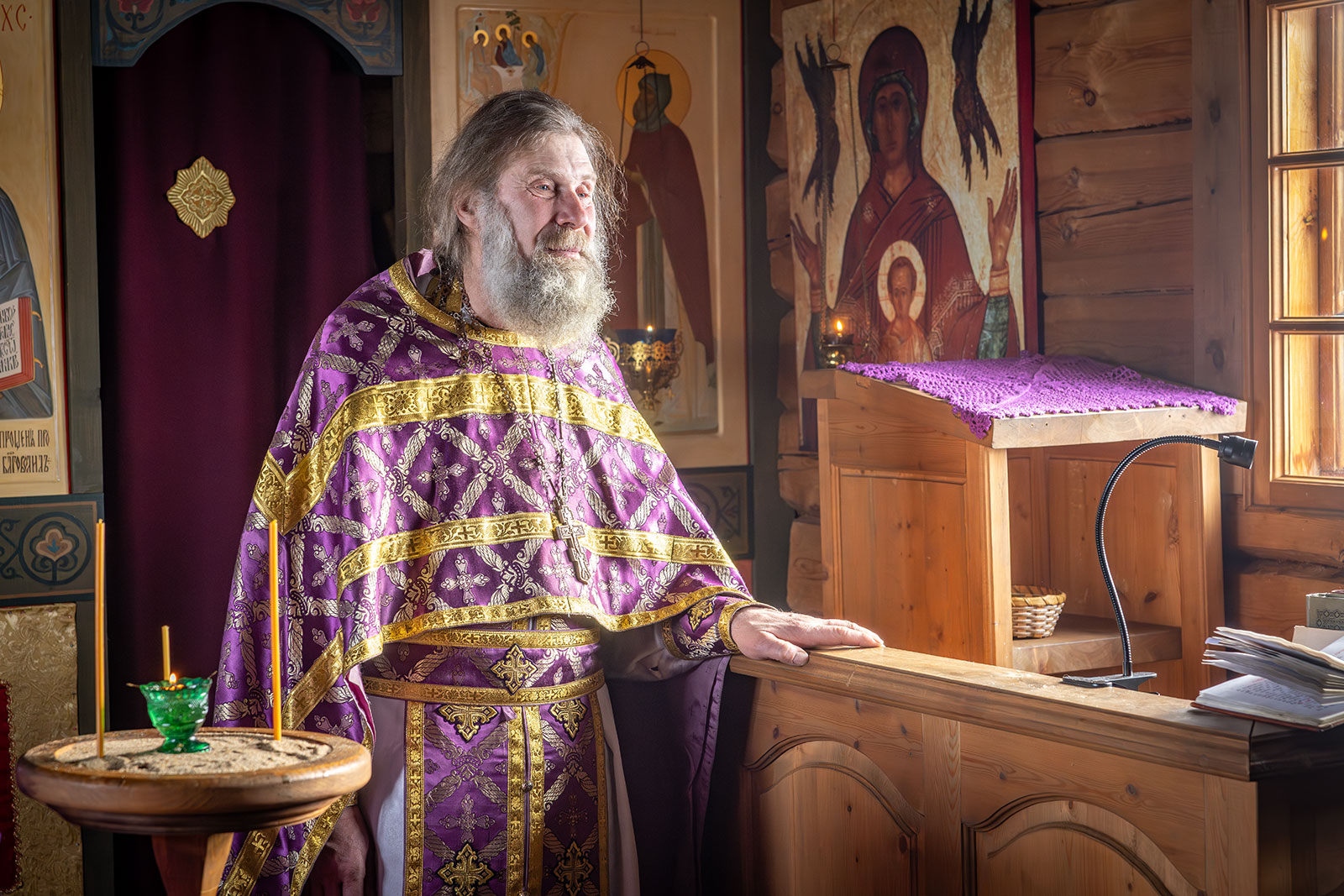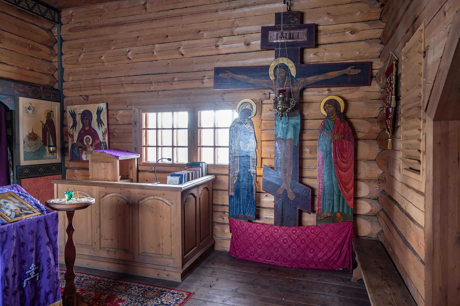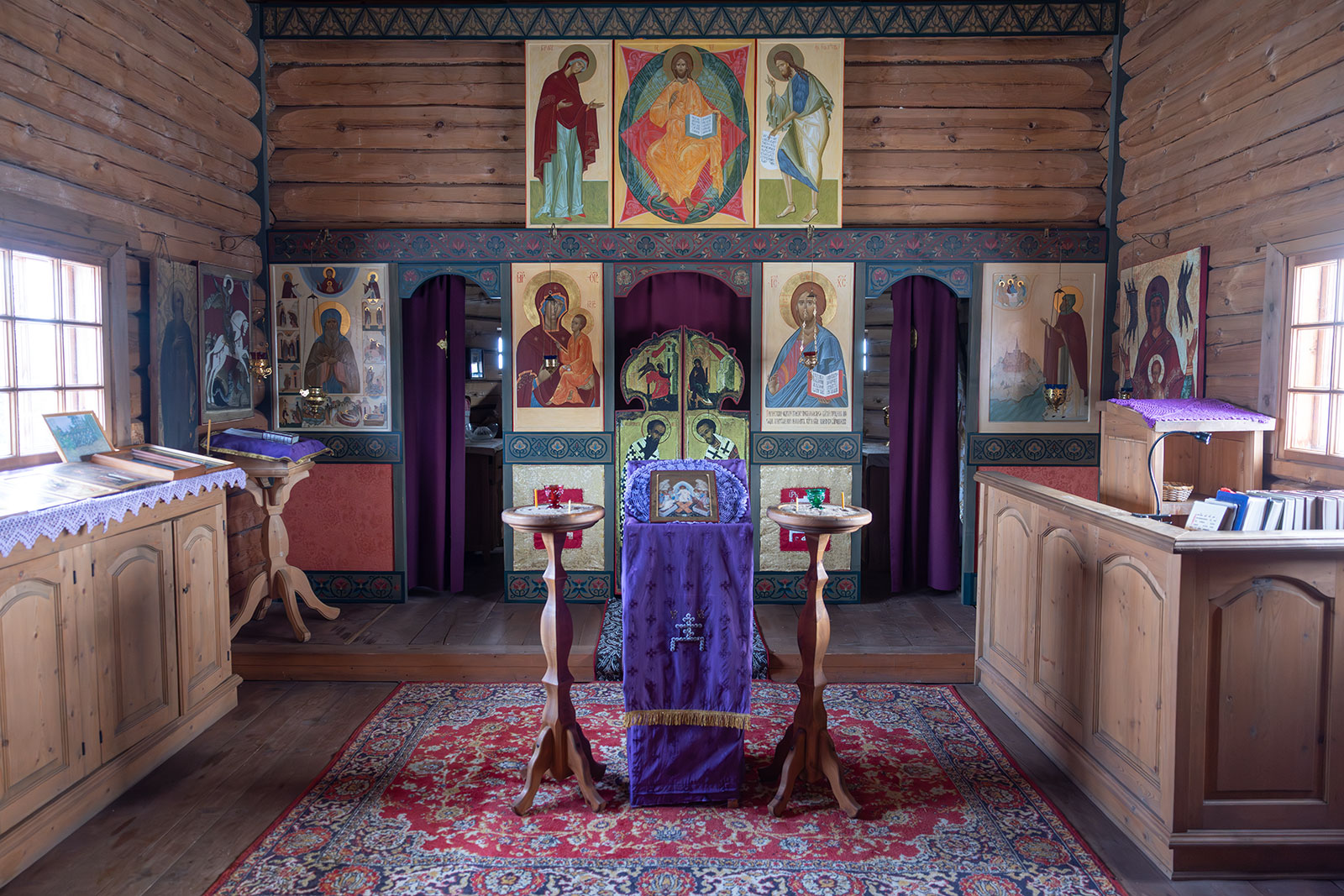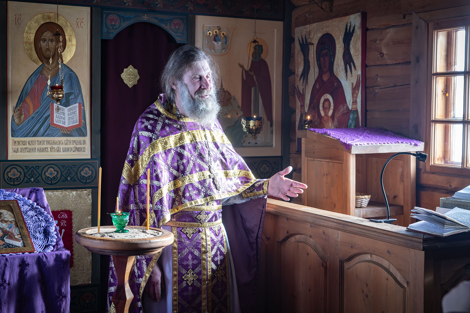 На фото: храм Диодора Юрьегорского в Куганаволоке, воскресная литургия, отец Олег и прихожане, часовня Петра и Павла в Куганаволоке.