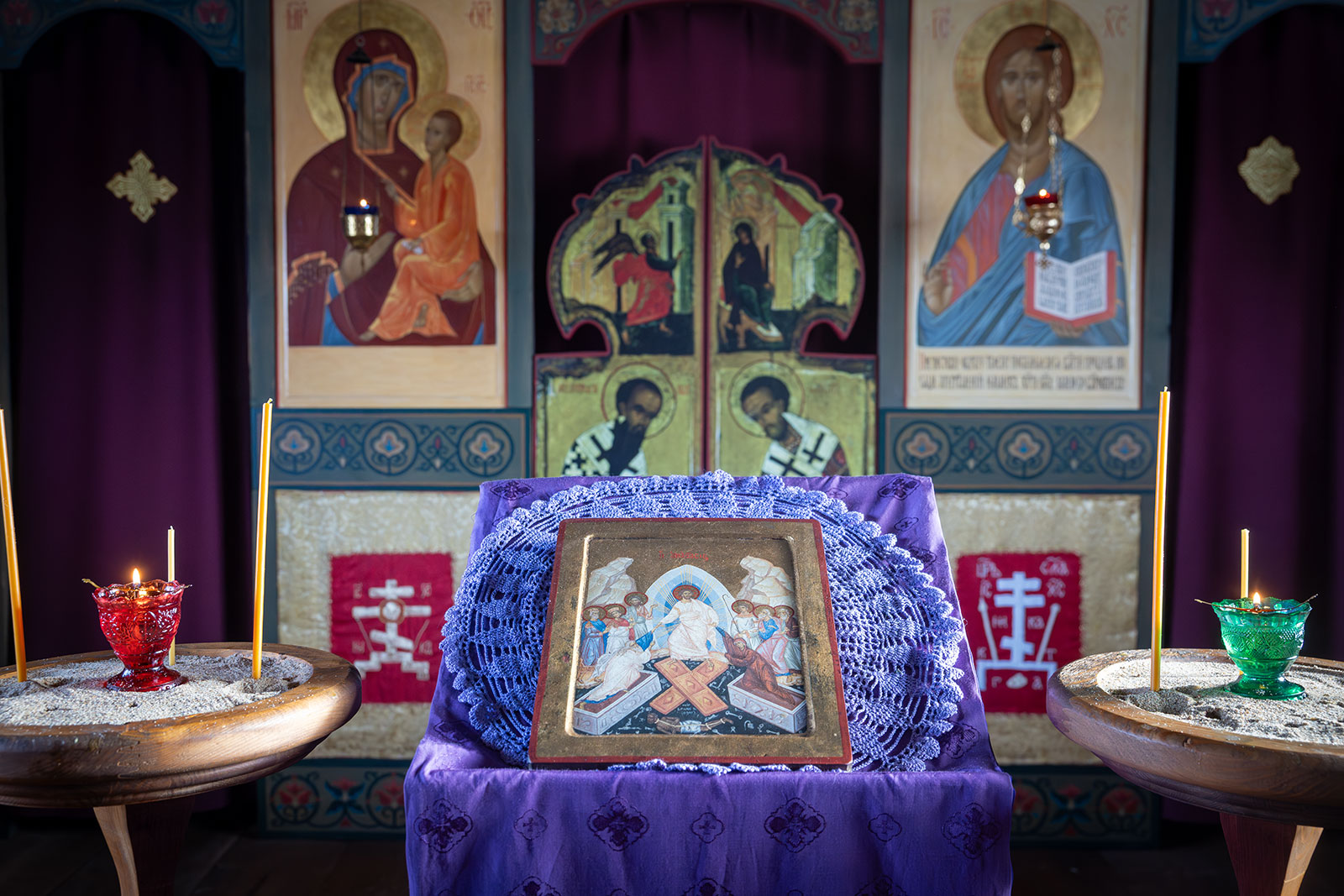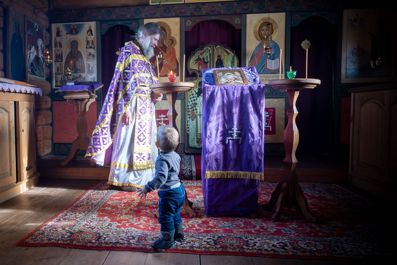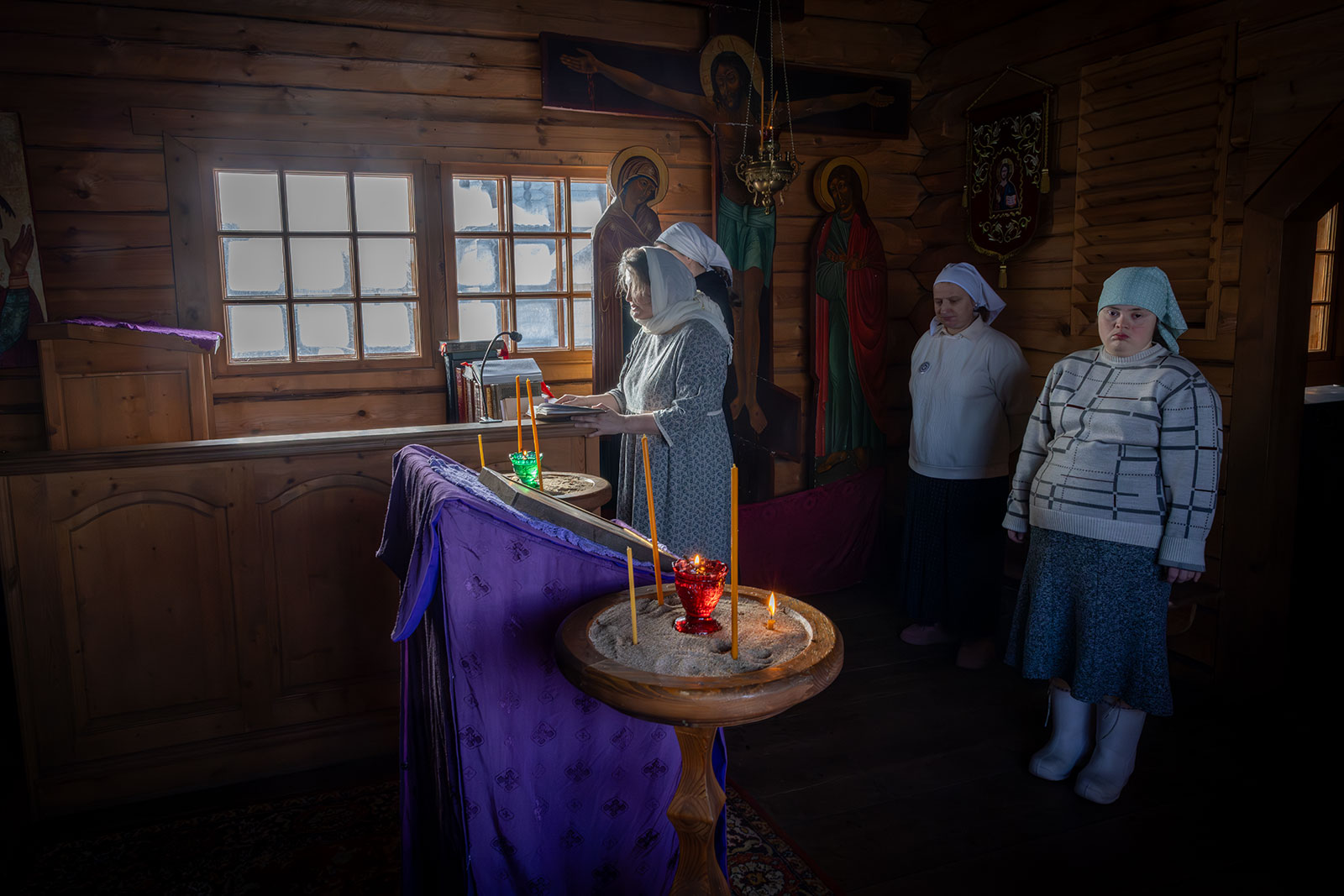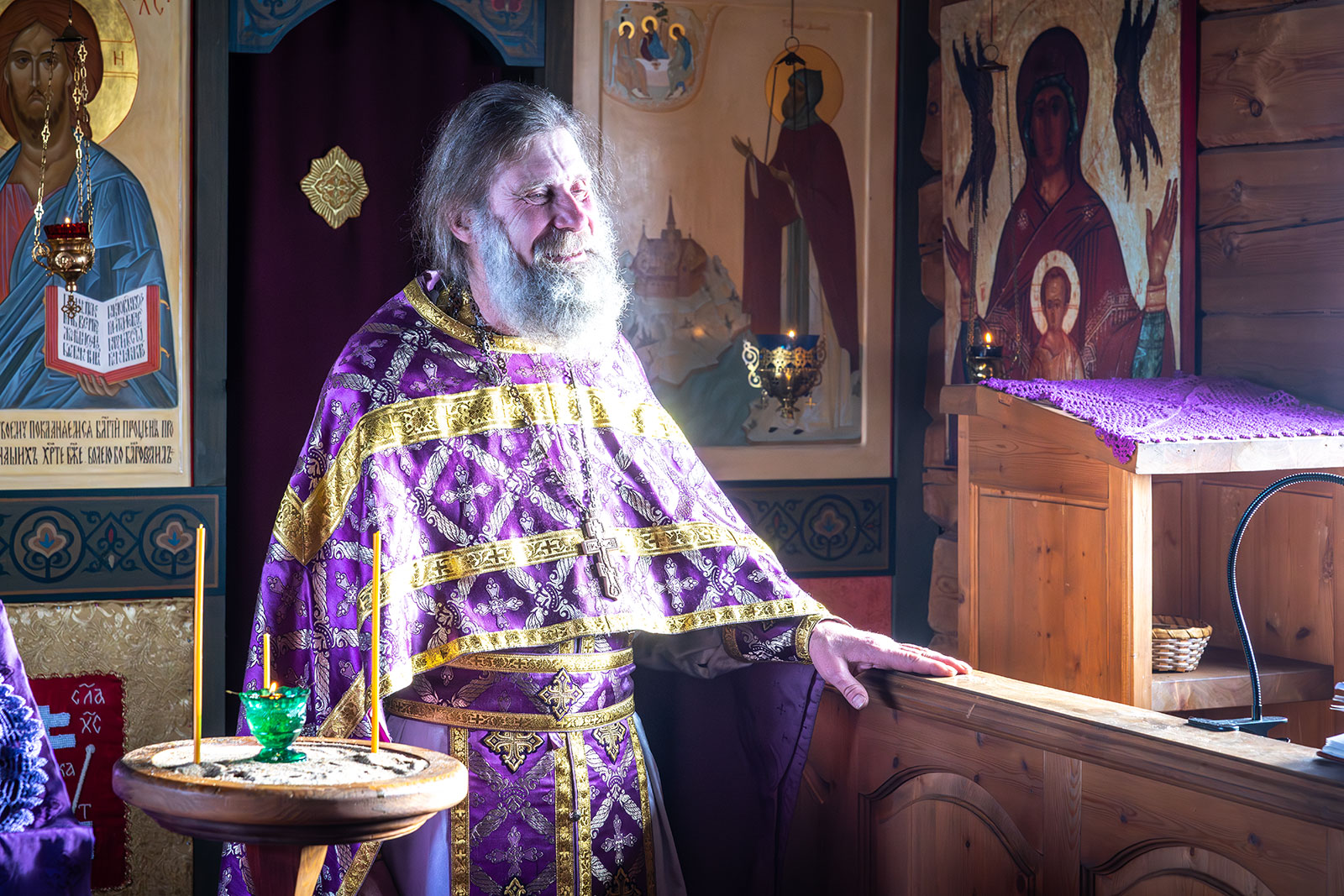 На фото: храм Диодора Юрьегорского в Куганаволоке, воскресная литургия, отец Олег и прихожане, часовня Петра и Павла в Куганаволоке.