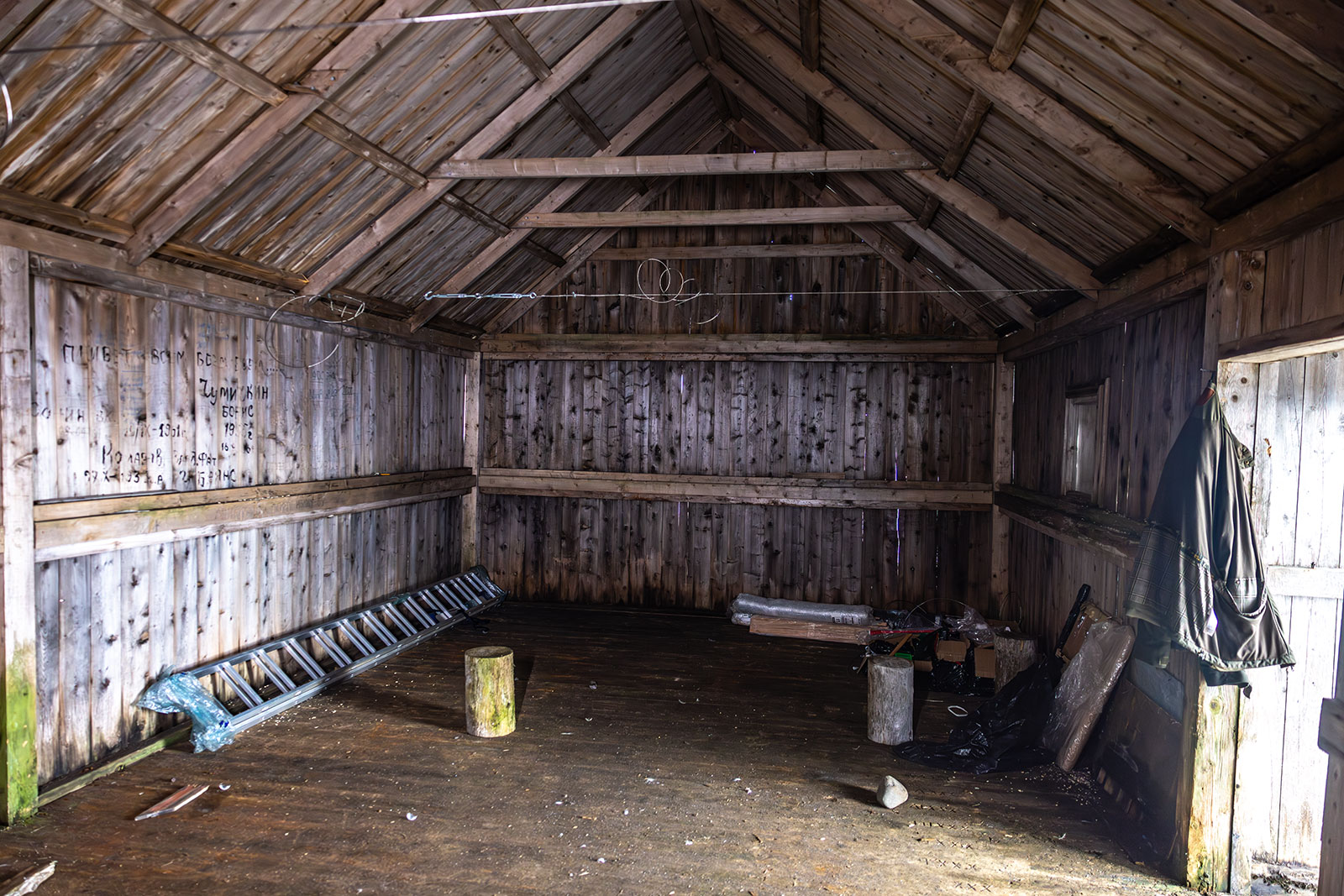 И вот 13:00. Весь стройматериал аккуратно складирован, внутри домика установлены стяжки на талрепах, которые создали натяжение во избежание дальнейшей деформации конструкции. Дверь закрыта, финальное фото части волонтеров и результатов работы. По рации звучит голос капитана: "Время 13:00, почему еще не все на борту?" Мы спешим сделать фото и быстро погрузиться в лодку и тут...