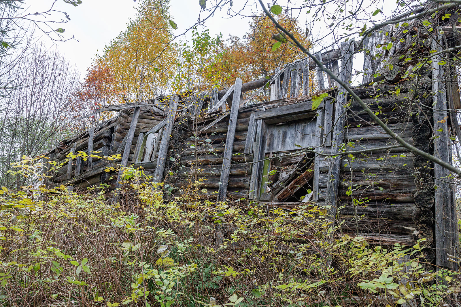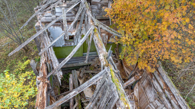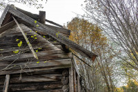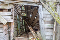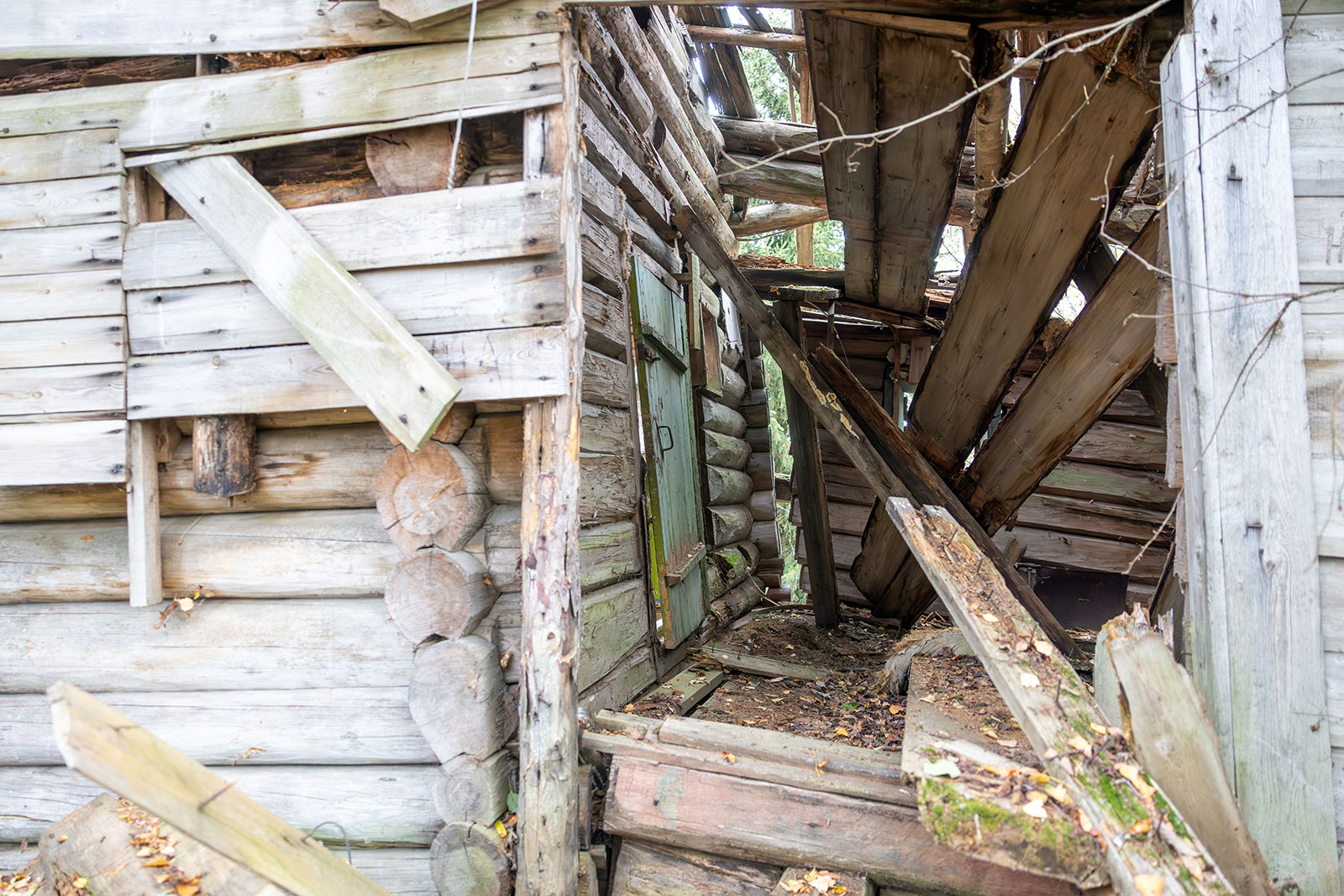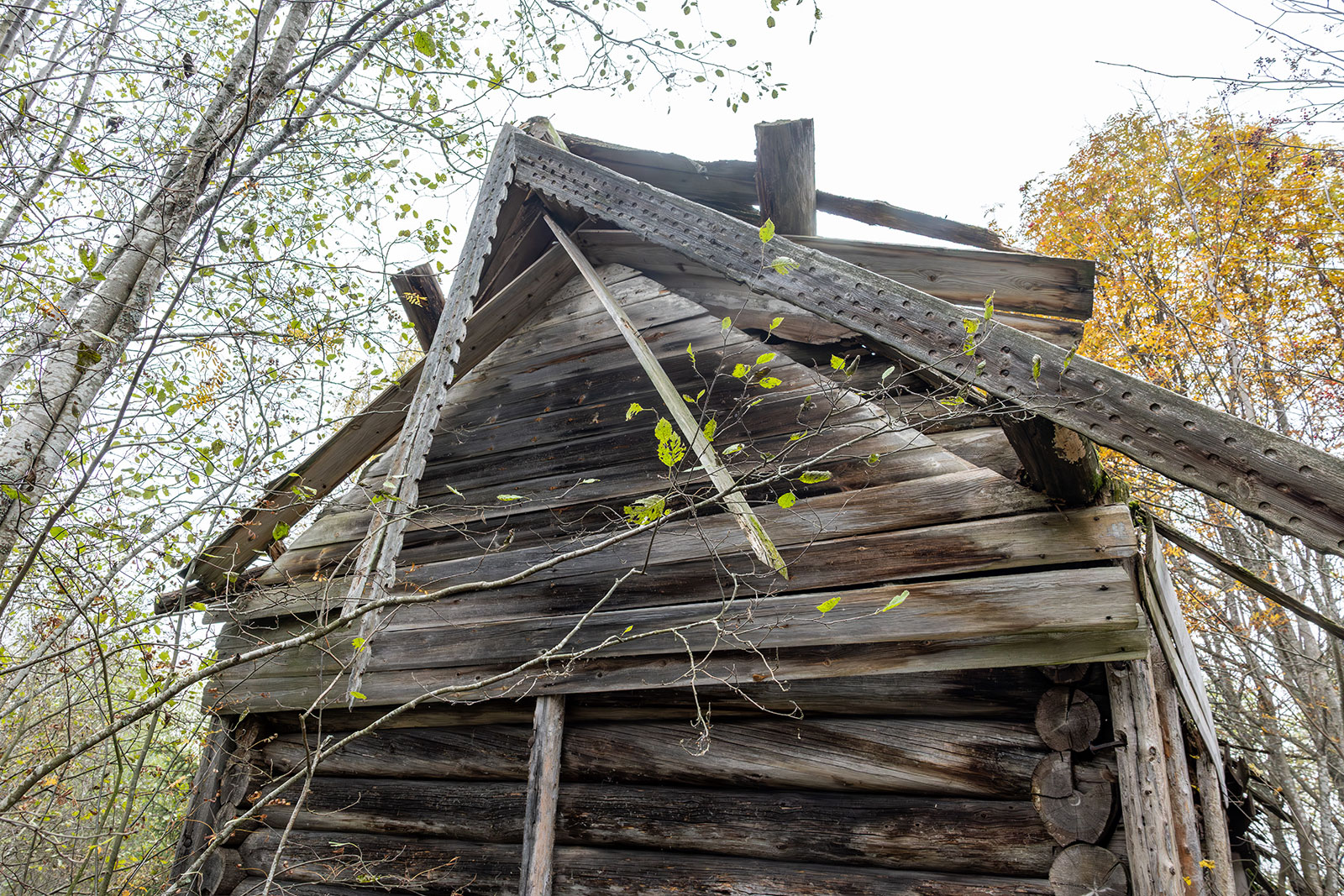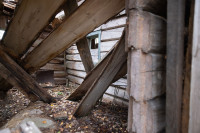 О том, что колокольня существовала ранее, свидетельствуют сохранившиеся фрагменты брёвен, врезанных под углом в средний фронтон. Точнее говоря, это остатки внутренних конструкций чердачного перекрытия колокольни. Вероятно, с противоположной стороны эти брёвна были аккуратно спилены заподлицо с плоскостью стены в тот период, когда обветшавшую колокольню разобрали, а на её месте соорудили простую двускатную кровлю в один уровень с основной крышей.