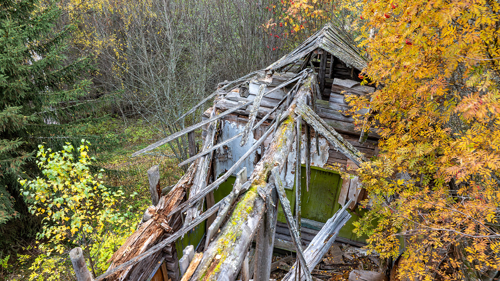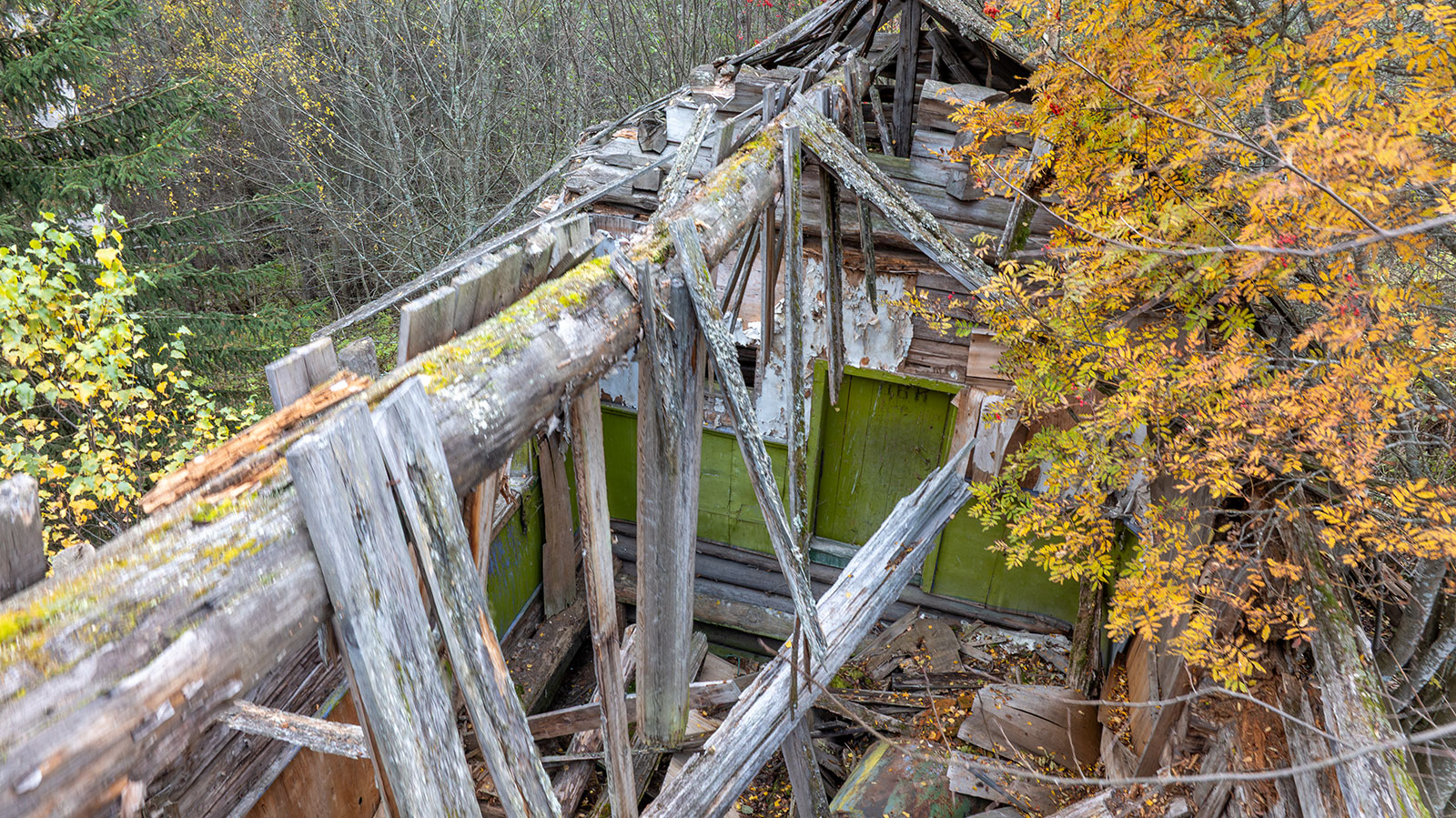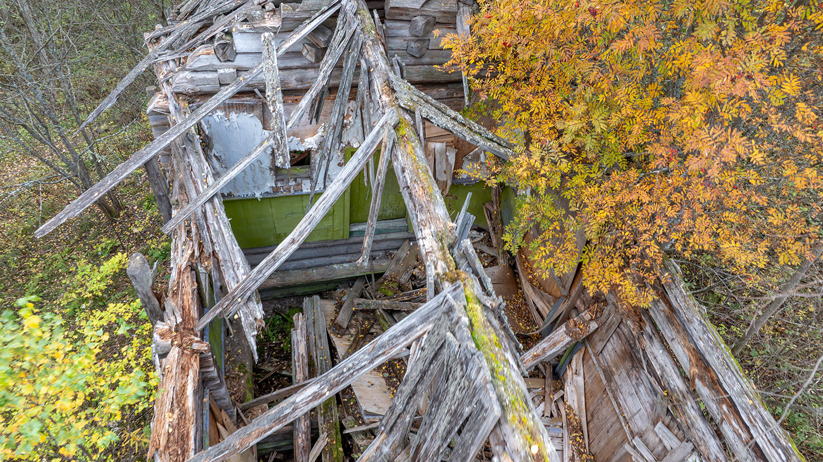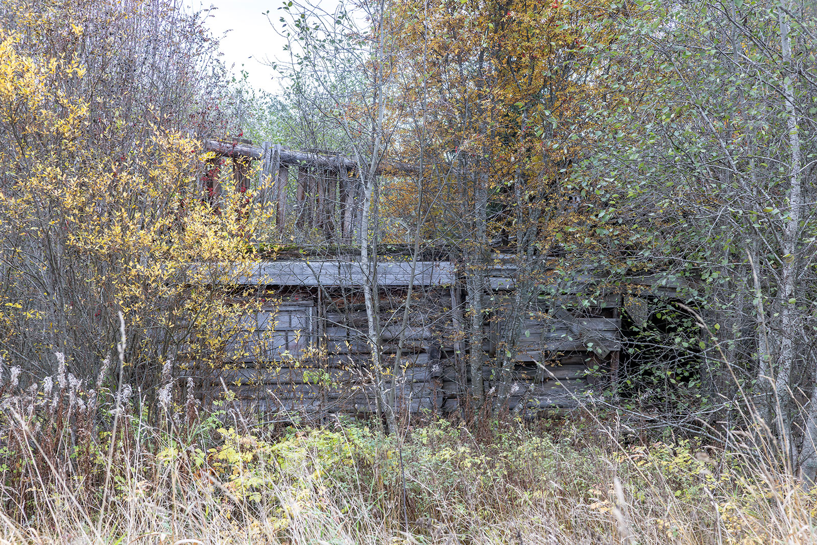 О том, что колокольня существовала ранее, свидетельствуют сохранившиеся фрагменты брёвен, врезанных под углом в средний фронтон. Точнее говоря, это остатки внутренних конструкций чердачного перекрытия колокольни. Вероятно, с противоположной стороны эти брёвна были аккуратно спилены заподлицо с плоскостью стены в тот период, когда обветшавшую колокольню разобрали, а на её месте соорудили простую двускатную кровлю в один уровень с основной крышей.