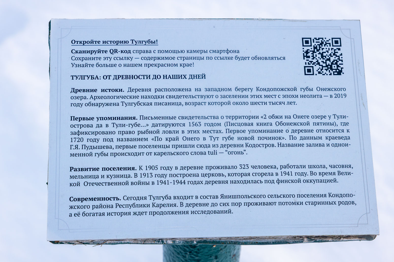 Про Тулгубу можно более подробно прочитать в статье: Тулгуба. Кондопожский район Карелии.