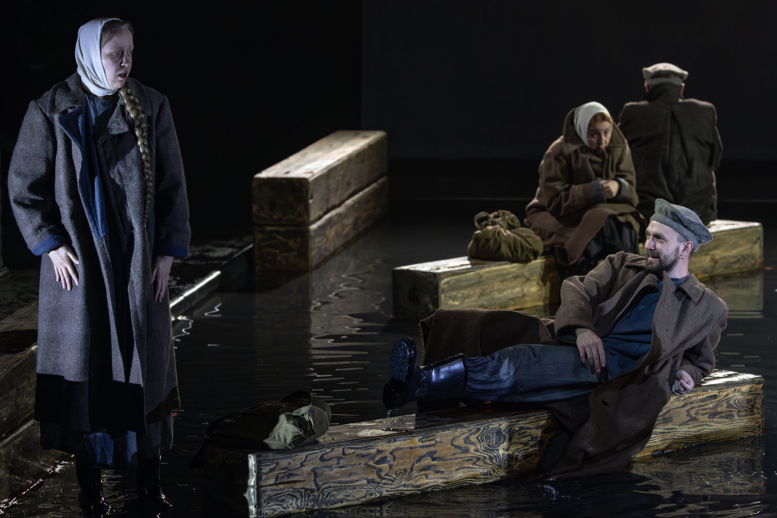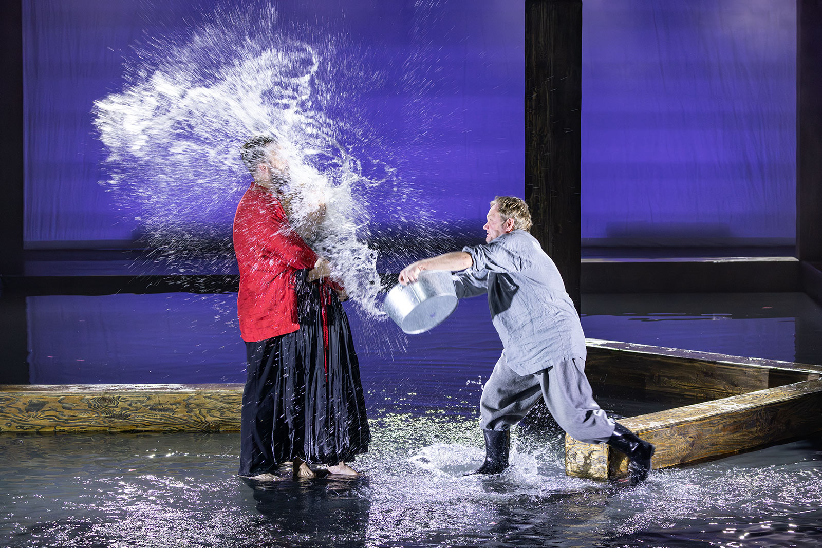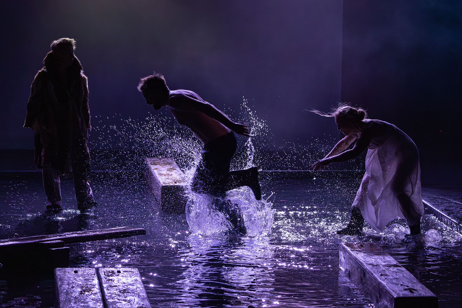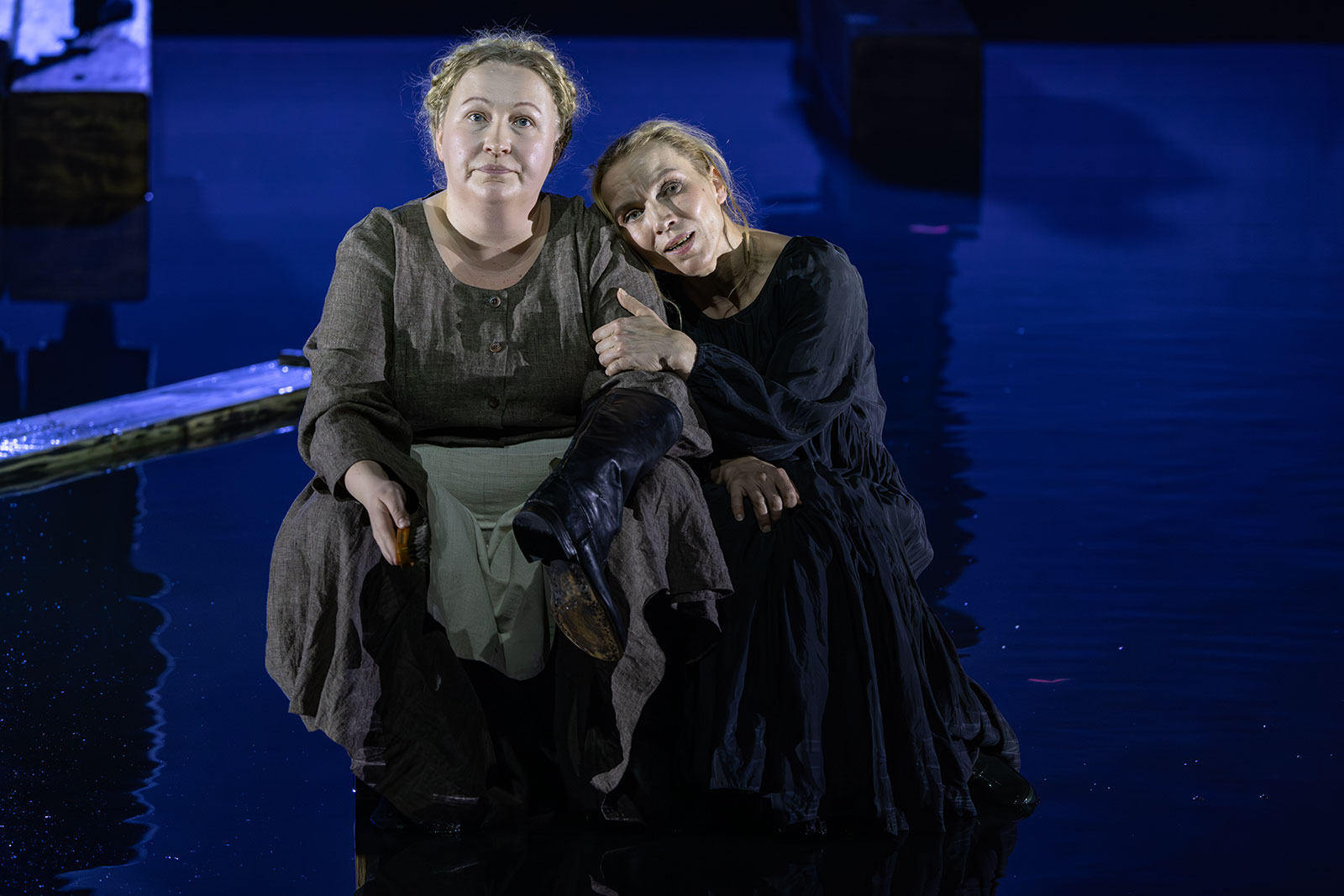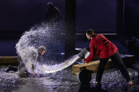 И вот уже XXI век, Петрозаводск, Национальный театр. Сцена, по которой периодически пробегает жива волна настоящей воды. До предела лаконичные декорации, которые в процессе спектакля преобразуются в минималистические и понятные без слов объекты.