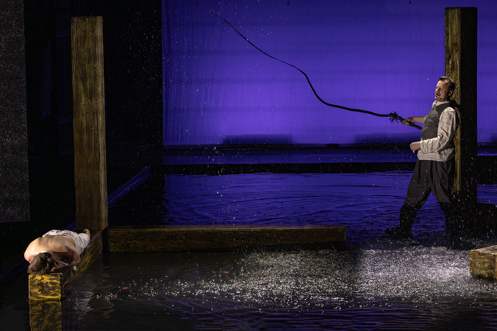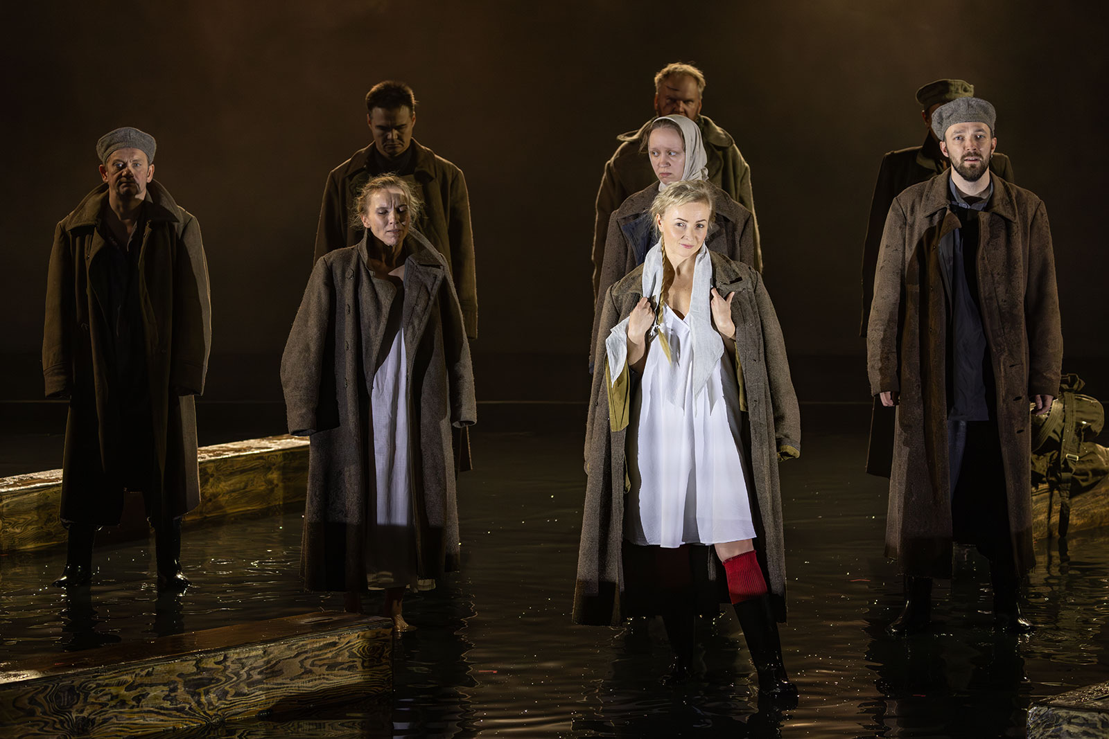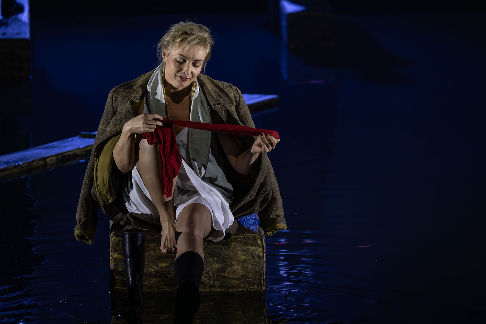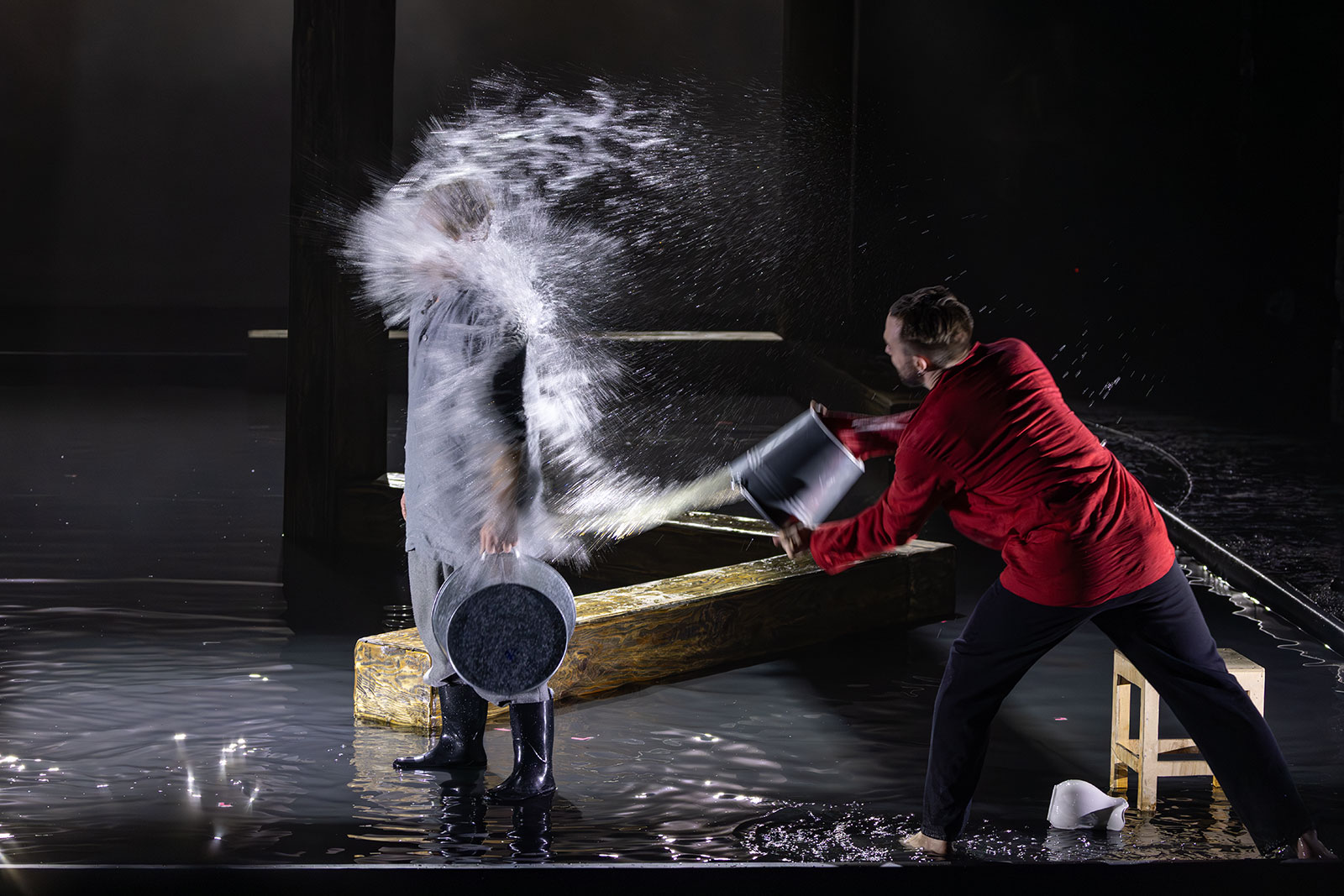 И вот уже XXI век, Петрозаводск, Национальный театр. Сцена, по которой периодически пробегает жива волна настоящей воды. До предела лаконичные декорации, которые в процессе спектакля преобразуются в минималистические и понятные без слов объекты.