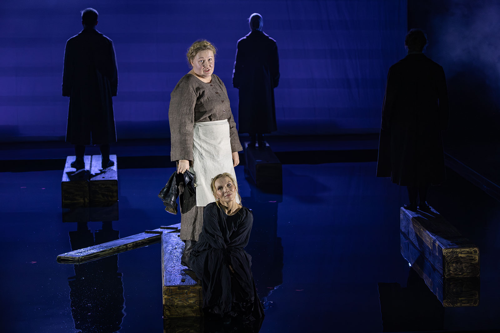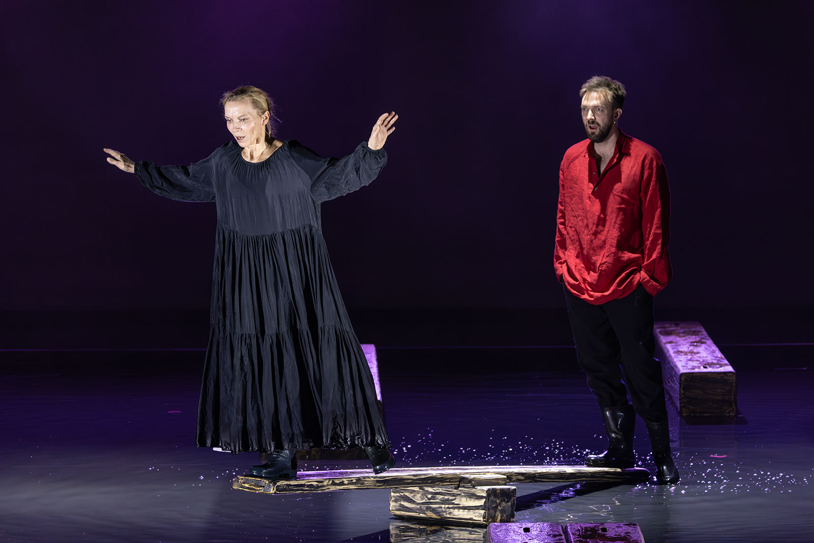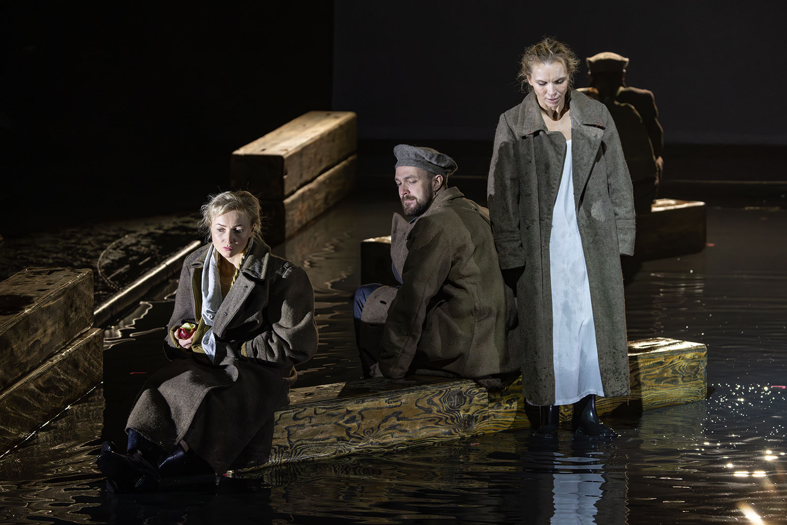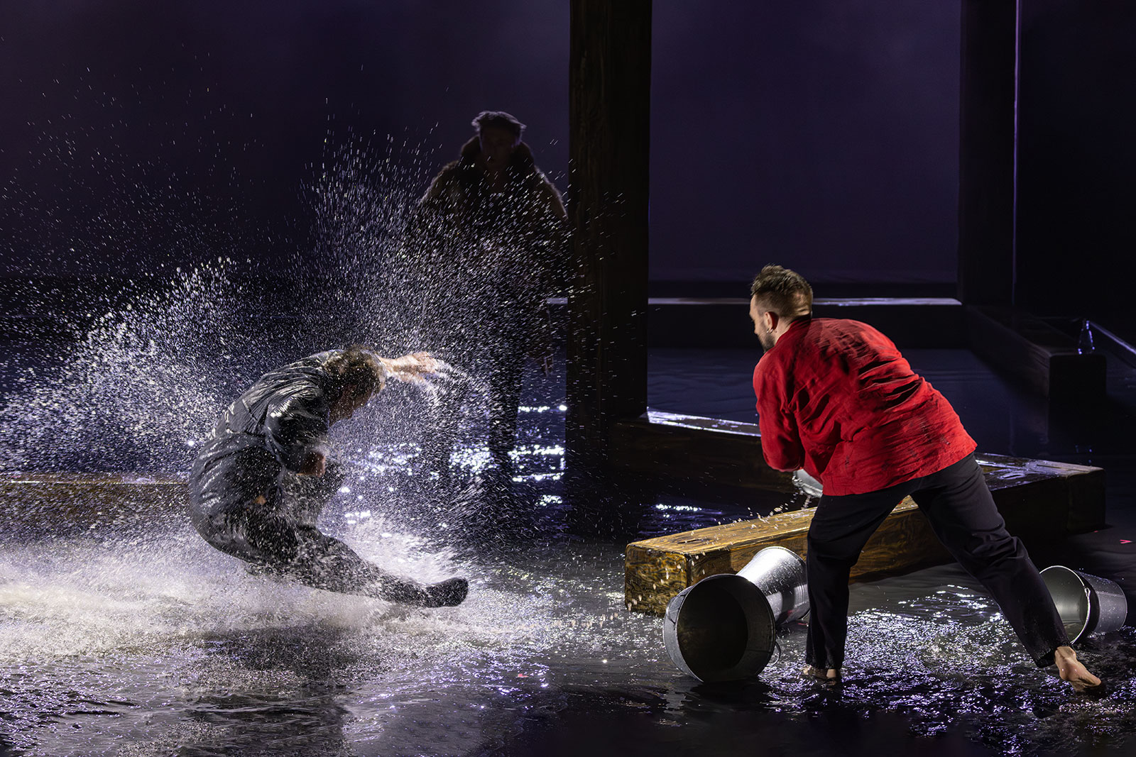 И вот уже XXI век, Петрозаводск, Национальный театр. Сцена, по которой периодически пробегает жива волна настоящей воды. До предела лаконичные декорации, которые в процессе спектакля преобразуются в минималистические и понятные без слов объекты.