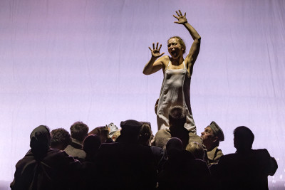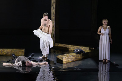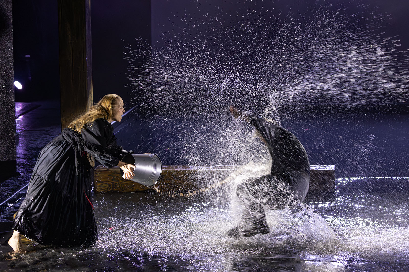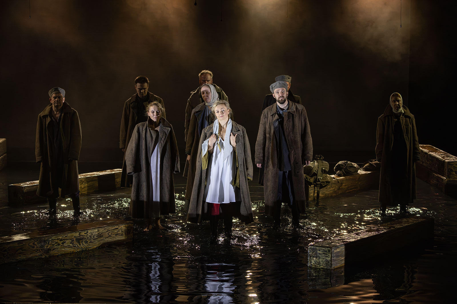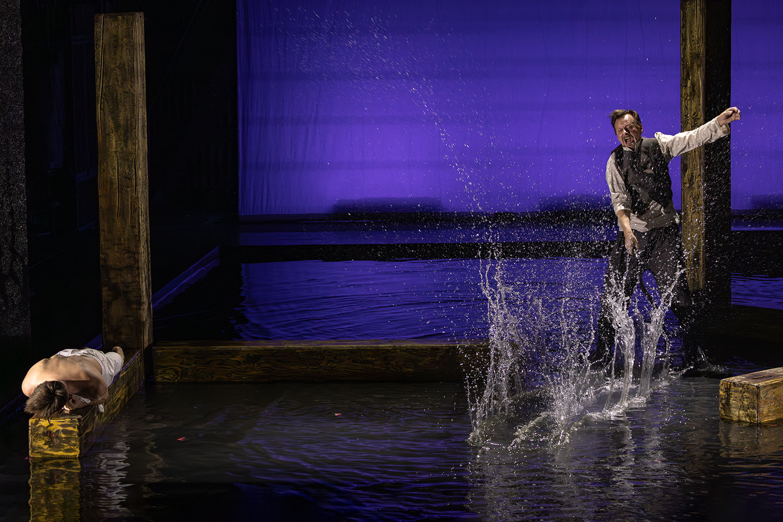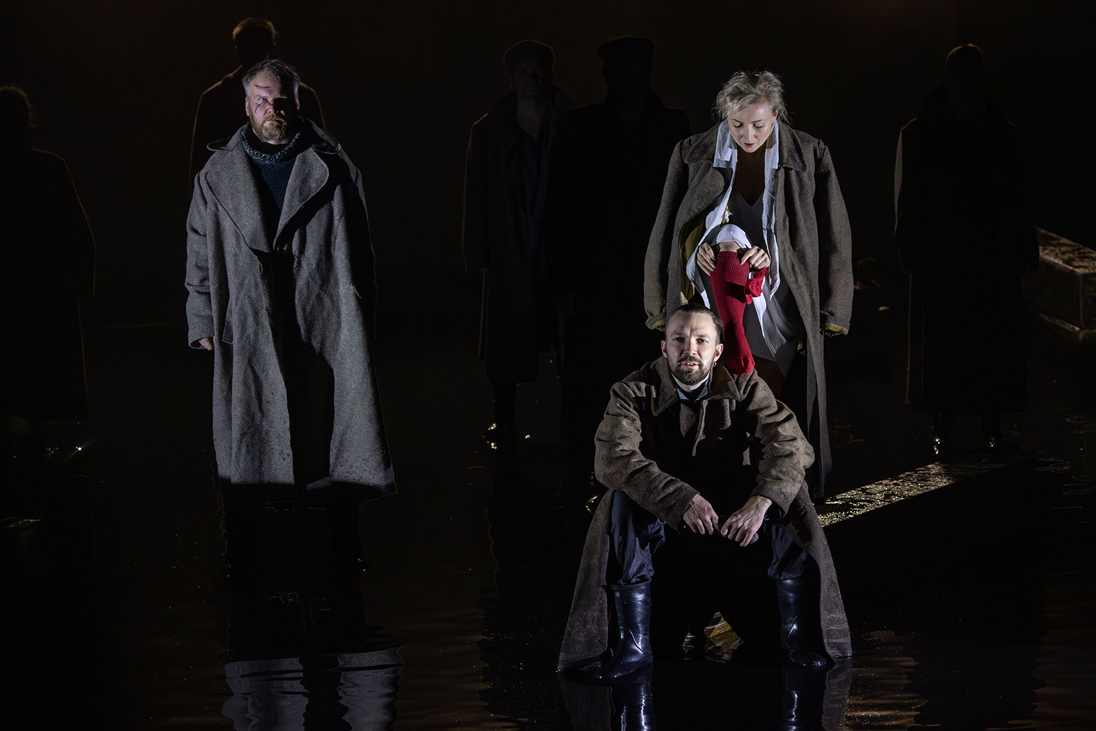 И вот уже XXI век, Петрозаводск, Национальный театр. Сцена, по которой периодически пробегает жива волна настоящей воды. До предела лаконичные декорации, которые в процессе спектакля преобразуются в минималистические и понятные без слов объекты.