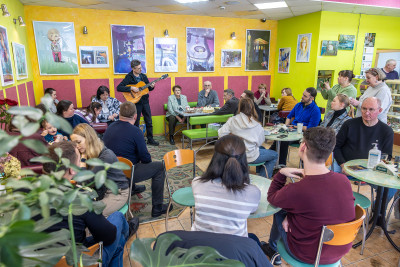 Есть стойкое ощущение, что, начиная с этой арт-встречи с художником Марией Начиновой, Валентин Сватовой может положить начало регулярным кафейно-домашним мини-концертам и творческим посиделкам в своей кондитерской!