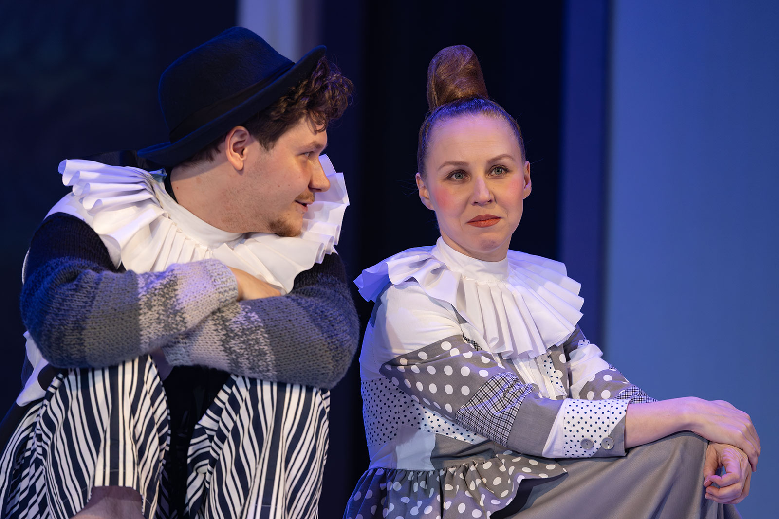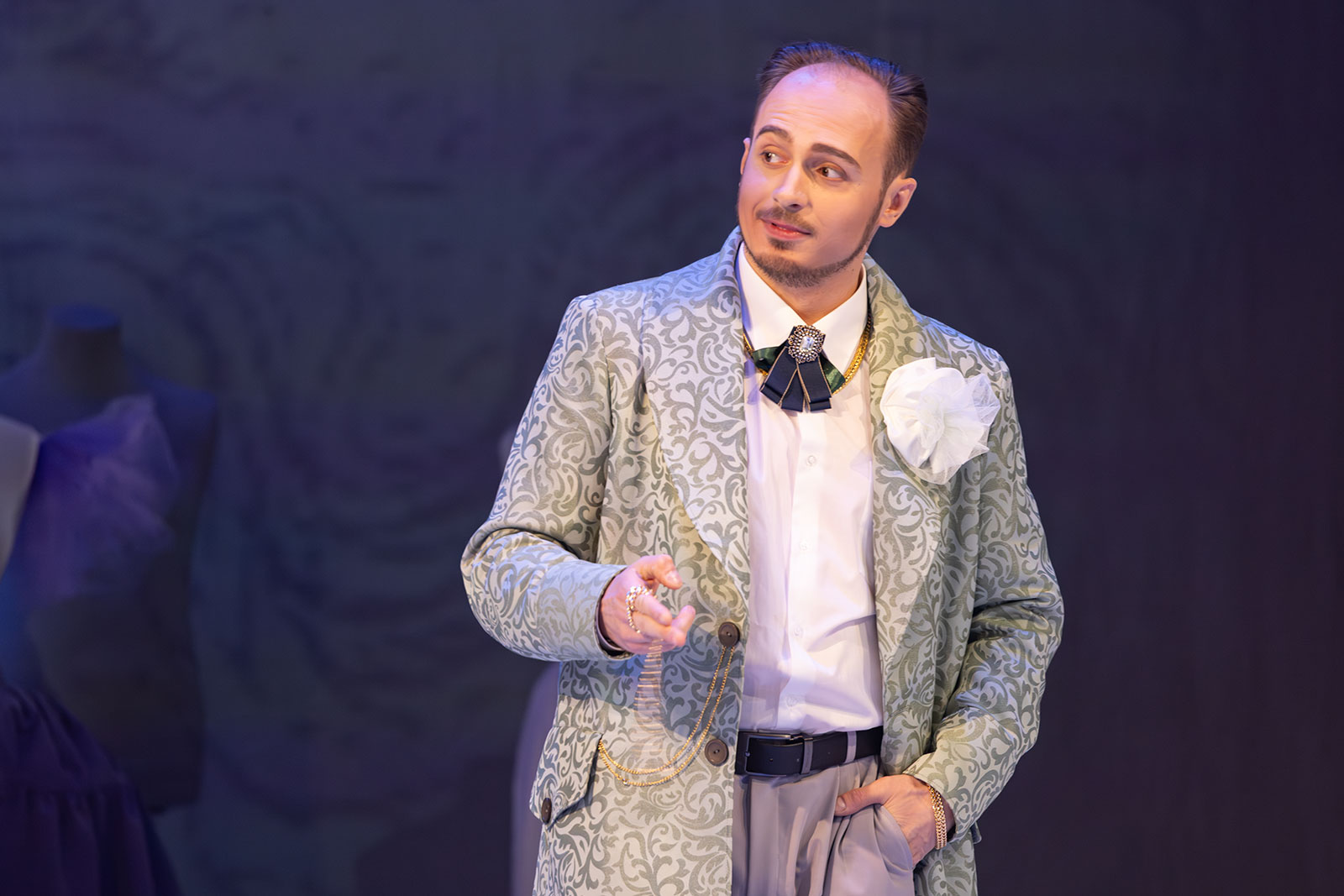 Актрисы Ортензия и Деянира (Галина Филюшкина и Настасья Шум) в пьесе — для создания настроения, лёгкости отношений и умелого дополнения интриг. Надо признать, актрисам удалось сыграть актрис настолько хорошо, что с одной стороны, влюбляешься в красоток с первого взгляда, а с другой — трезво оцениваешь себя как не входящего в круг их интересов: не граф и даже не маркиз, а простой зритель из провинциального городка. Необычное ощущение.