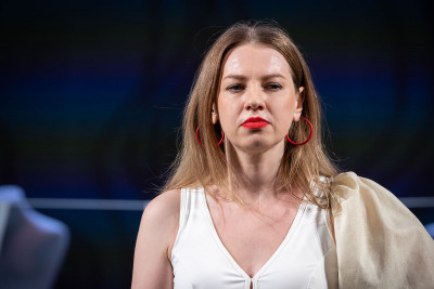 Мирандолина (Юлия Куйка). Та самая уверенная в себе женщина, каких мы нередко встречали рядом. Красивая, молодая, привыкшая покорять всех и достигать целей. Очаровывает сильных мира, но всегда держит при себе и «маленьких», но нужных мужчин. Умело управляет всеми. Однако в сценах с Кавалером начинает казаться, что всё по-настоящему. Будто главная героиня сама влюбляется в надменного аристократа. И перед ней уже не стоит задача лишь подчинить его. Но в тот момент, когда мы ждём признания, Мирандолина вновь становится Мирандолиной. Она победила.